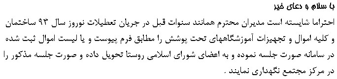قابل توجه همکاران محترم علاقمند به انجام اقدام پژوهی ؛ آثار خود را حداکثر تا مورخه 20/01/93 جهت داوری به واحد پژوهش و تحقیقات مدیریت محترم تحویل دهند.