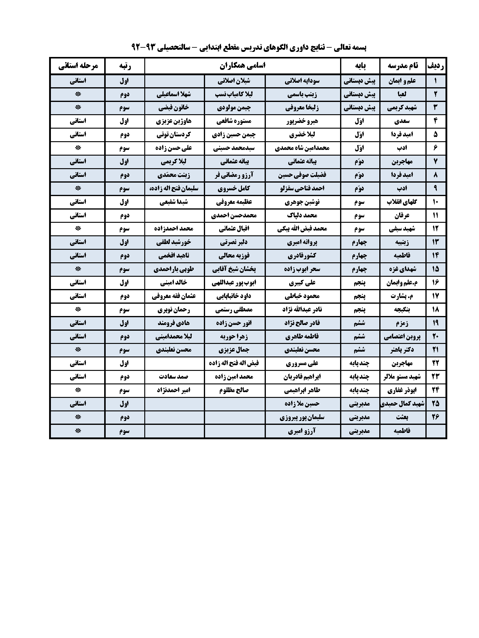 دریافت فایل نتایج داوری جشنواره الگوهای تدریس 93-92 دوره ابتدایی شهرستان بوکان